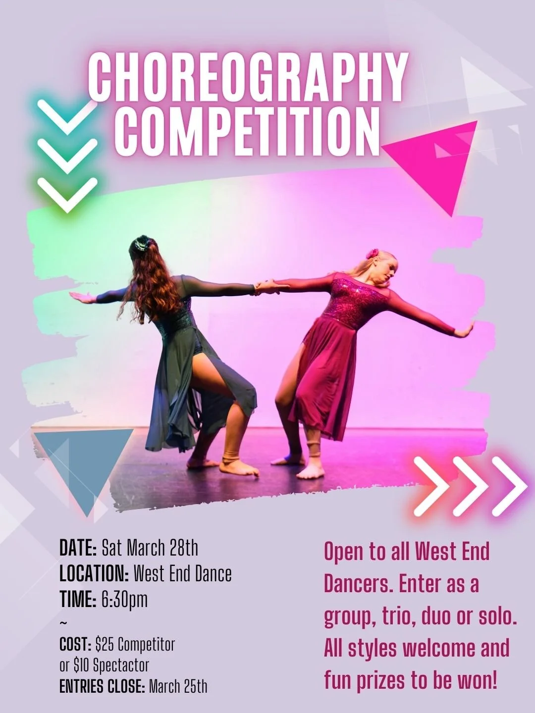 Perform your entry at our Choreography Comp on March 28th at West End Dance.